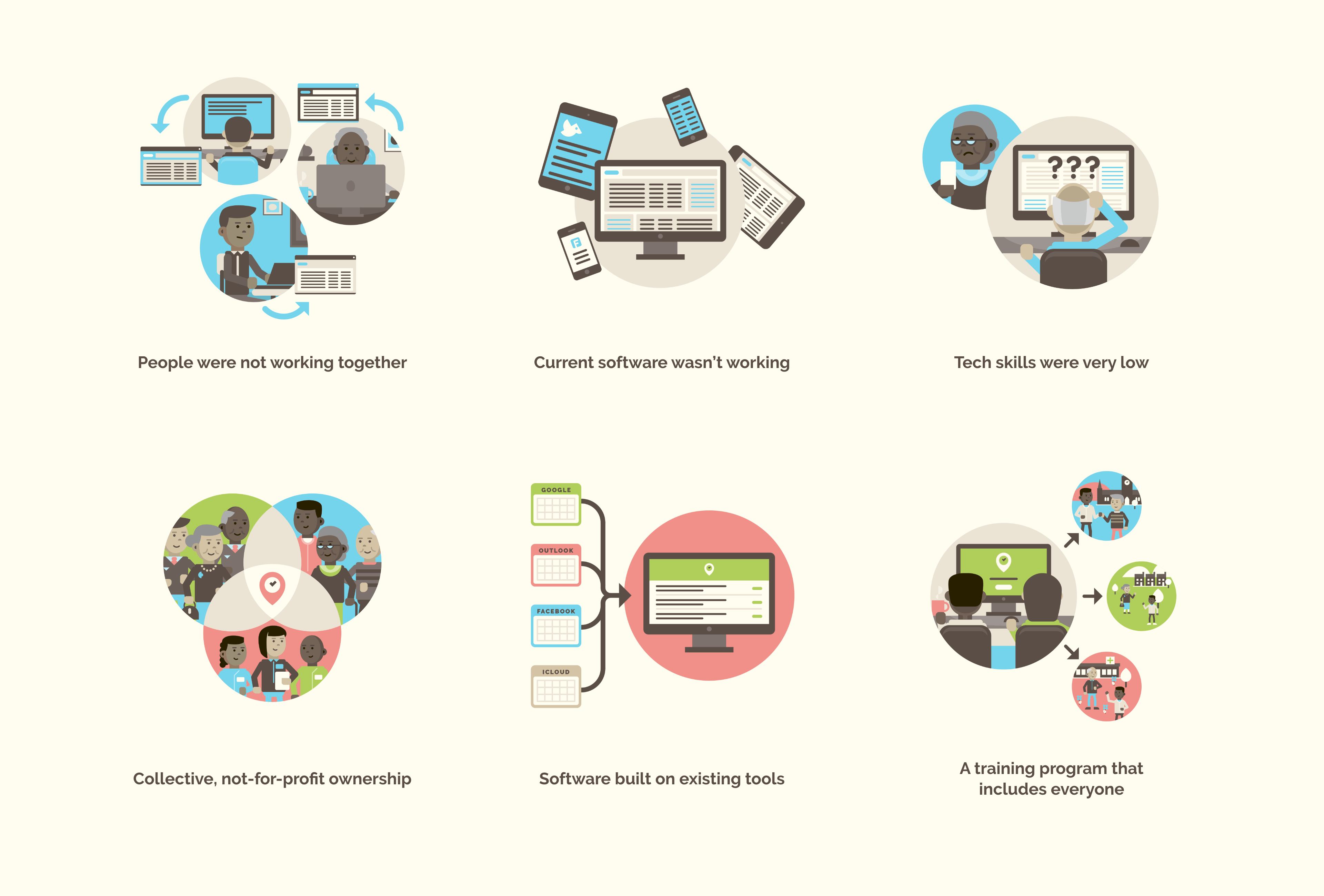 Communicating all that however was proving difficult — an academic approach to a social situation needed a clear and friendly look to help folks connect and welcome a new tool and approach.