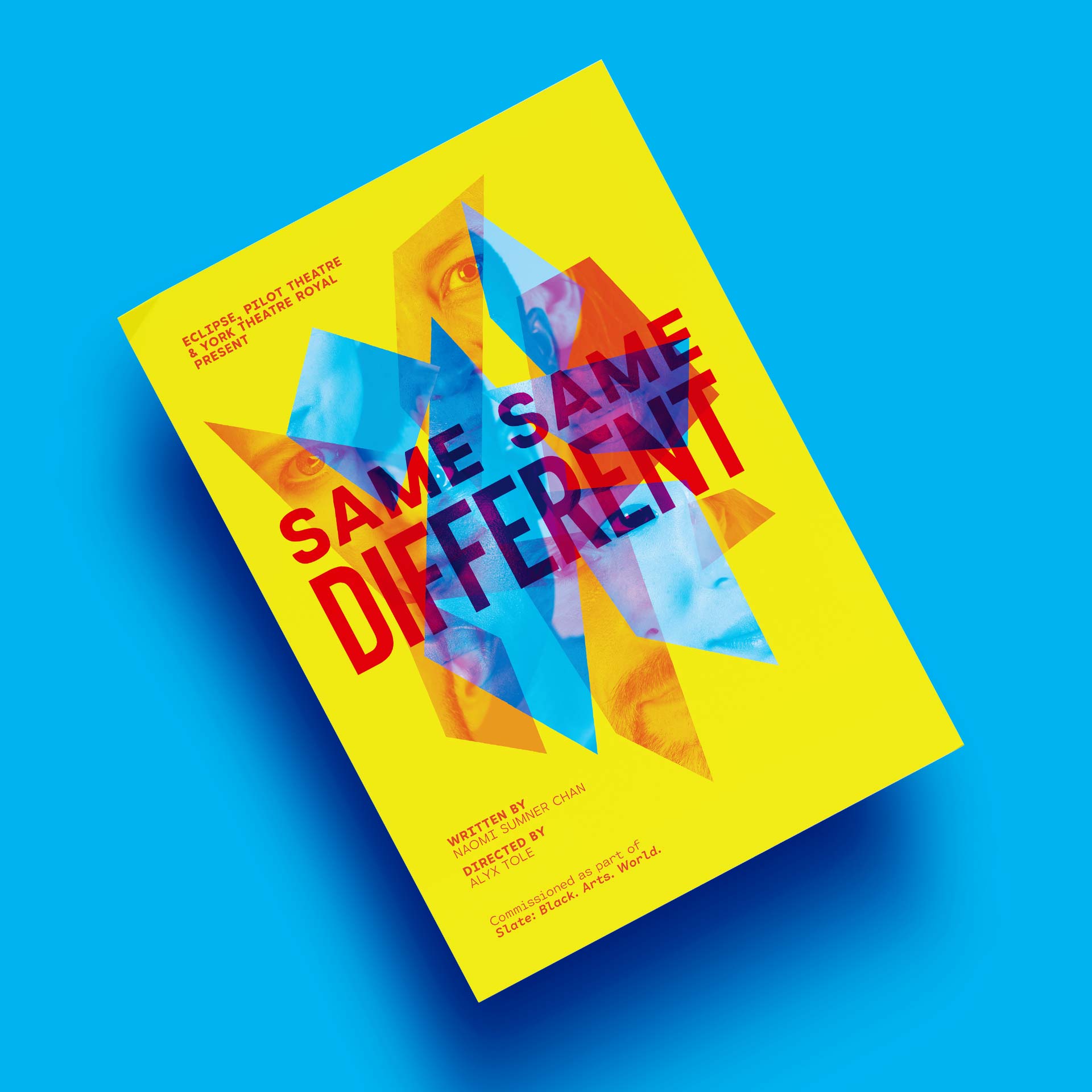 Mark created a brilliant eye-catching design for the SAME SAME DIFFERENT posters, flyers and online branding. The bright colours of our printed programmes stood out in theatre foyers which was ideal, drawing attention to the work of a new playwright and the image of fractured reflections on shards of glass fitted the themes of the play. We loved his work so much that we incorporated elements of his design into the set and costumes.