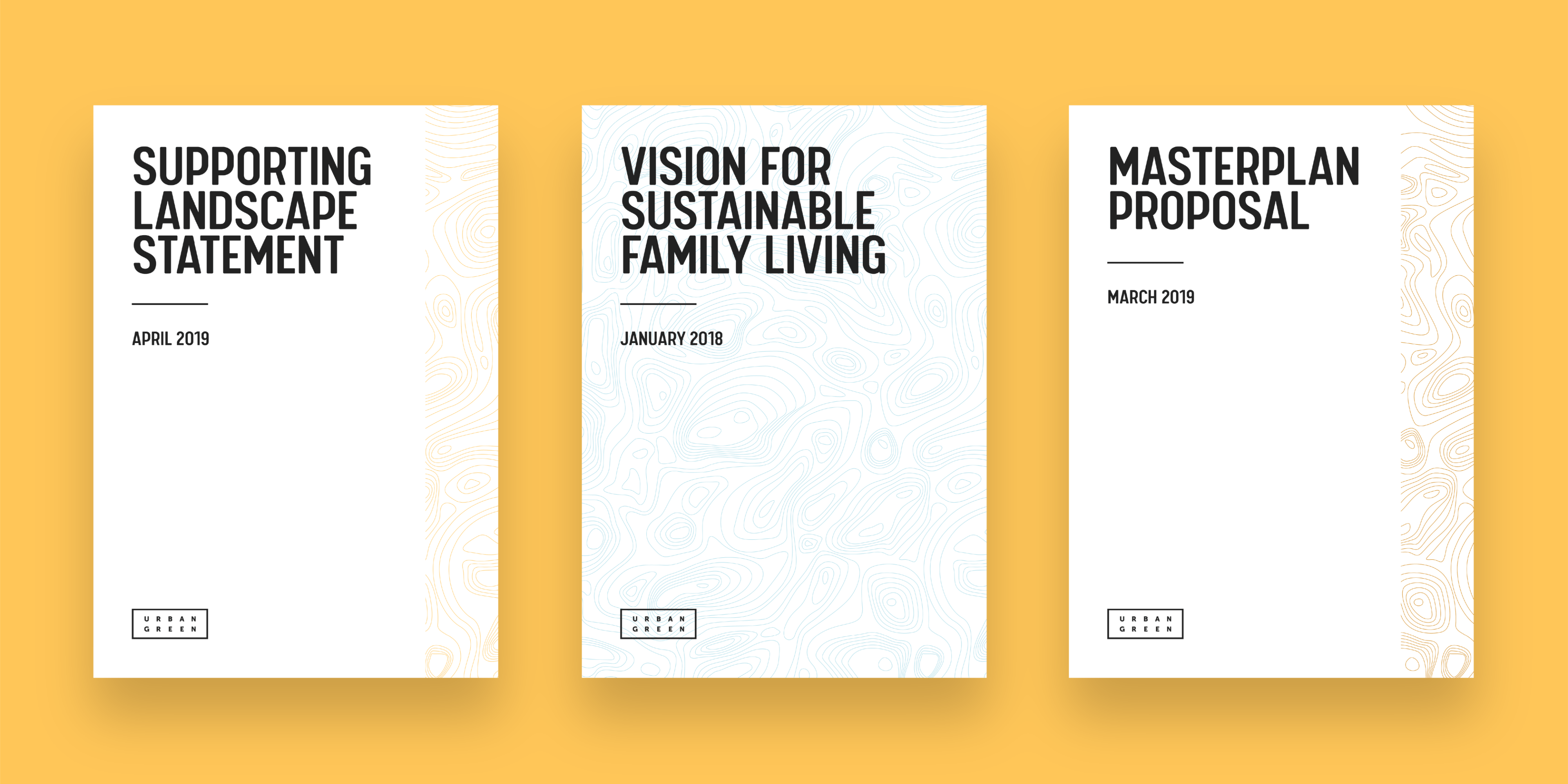 In keeping with the landscape approach, we created a contour pattern as a way to bring in colour and recognition to Urban Green’s materials.